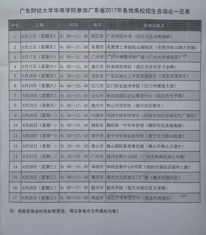 另外,考生及家长还可参加各地市招生办近期举办的现场咨询会(具体安排见附表)。也可通过网络途径获得更多招生资讯,包括QQ群、学院招生办官方微信公众号、学院招生办官网等。
