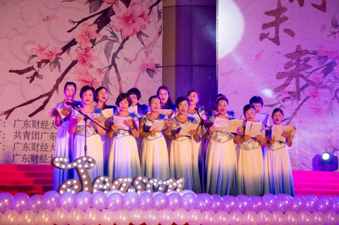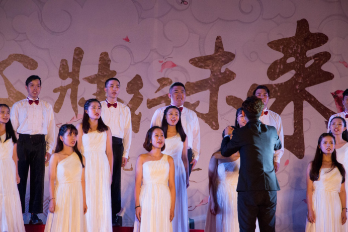 第二篇章为“与时舒卷”,愿华商学子们能随着时代的变化,施展自己的才能。作为此章的第一个节目,院艺术团合唱队们带来了合唱《城南送别》,他们以高昂美妙的歌声打动了现场观众,歌曲的情绪刚好适用于表达毕业生们对母校的不舍。