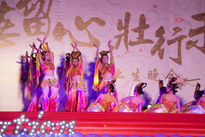 工管系舞蹈队给我们带来了舞蹈《最好的青春》,他们给我们带来了充满活力和热血的舞蹈,现场观众惊叹连连。接下来,是全场呼声最高,现场尖叫声不断的院艺术团模特队的走秀节目《Dream Vision》,模特们精美优雅的服饰,曼妙的身材再配上鼓舞人心的音乐使现场气氛达到高潮。接下来,院艺术团舞蹈女队带来了《乐天舞》,优美的舞姿展示了他们独特的魅力。此次晚会可谓精彩连连,长青大学的学员们带来了合唱以及舞蹈《走进新时代》,她们随风歌唱,随歌舞动,显示出不一样的活力及风姿。