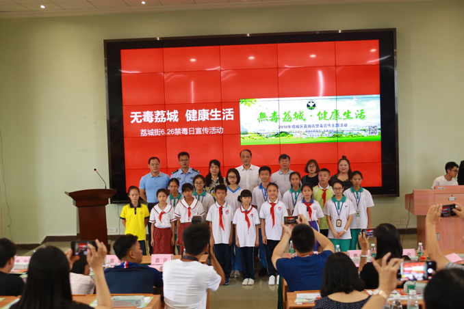 在骄阳似火的六月里,借助6.26国际禁毒日契机,由共青团广东财经大学华商学院委员会、广州市增城区禁毒办联合举办的“无毒荔城,健康生活”大型禁毒宣传活动于6月25日上午在我们开展。华商学院党委书记苏宁、增城区禁毒办副主任汪芳、华商学院学生处处长李希恒、荔城党委委员刘树彪等领导和嘉宾出席了此次活动。