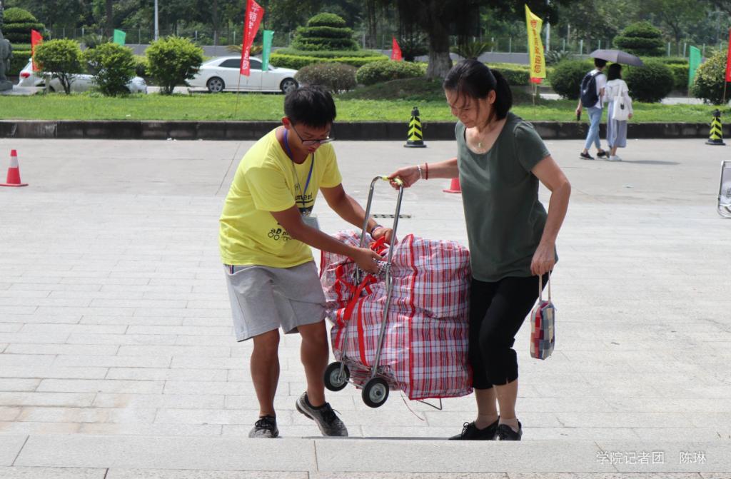虽然报到当天骄阳似火,但是没有消磨掉头戴“小黄帽”的校方志愿者和各系、部门的学生志愿者的热情,他们忙碌的身影成为了华商一道亮丽的风景线。虽然天气炎热,奔走学校的各个角落,即使工作劳累,但看到新生满意的笑容,所有的疲惫都烟消云散。更重要的是,看见新生仿佛看到当初的自己,自己也希望把当初的这份温暖继续传递下去,让充满感恩与友爱的校园氛围也给新生们留下了暖心的回忆。