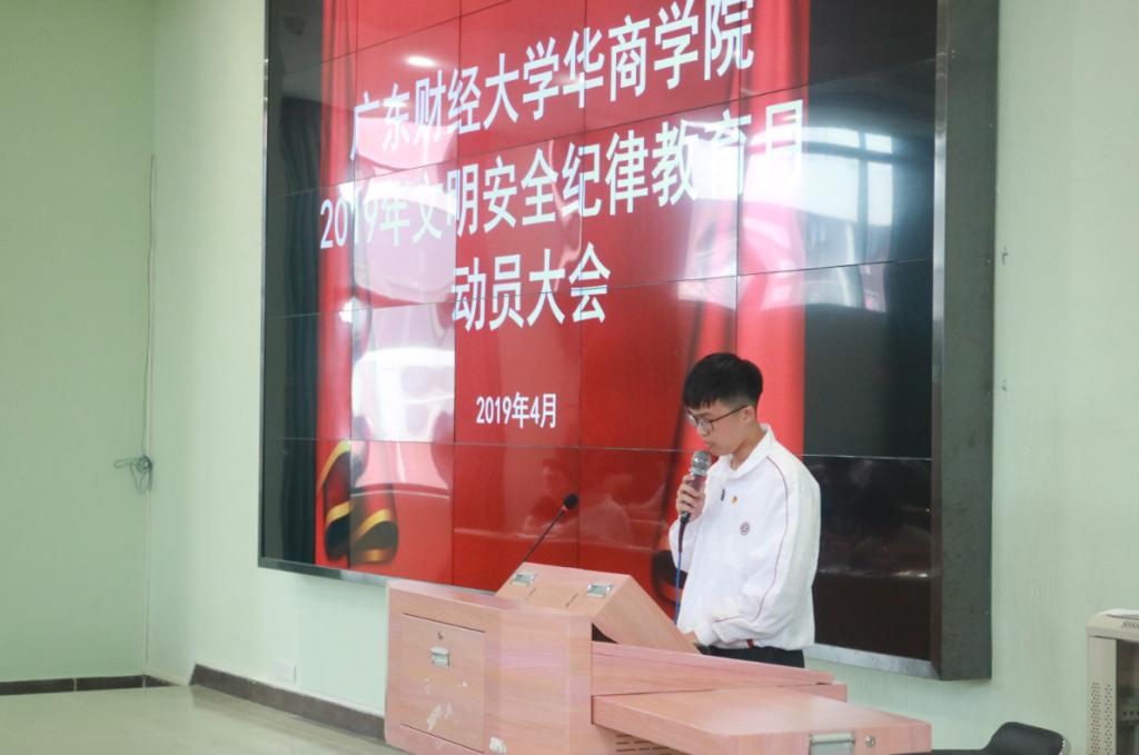 4月9日下午,我们2019年文明安全纪律教育动员大会在励志楼C408举行。大会由学生处副处长黄国富主持。副校长王锦秀、学生处处长李希恒、学生处副处长熊桂桃、团委副书记陈刚、经济与金融系学工主任邱会锋、工商管理系学工主任陈纯华、公共管理系学工主任张志强、外语系学工主任陈少鸿、文学系学工主任何顺发、艺术设计学系彭博娜、信息工程系学工主任蒋大锐、全体辅导员、学生处全体人员及非毕业班班长、院系12大学生组织负责人等出席了本次会议。