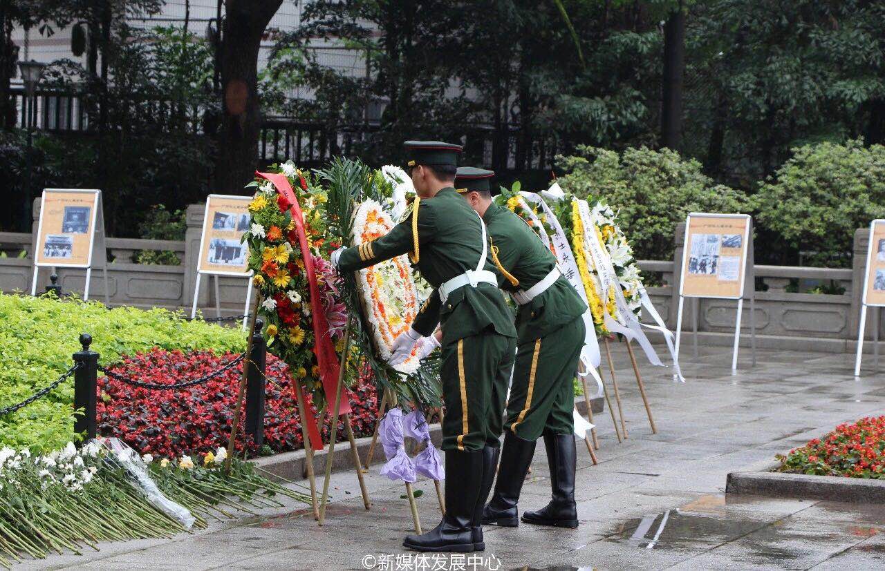 默哀过后,全体师生依次向烈士献上花圈、鲜花。