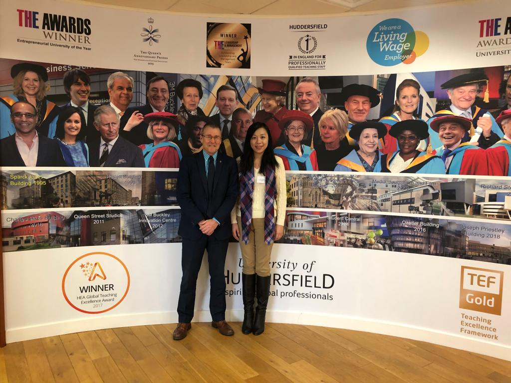 ▲我们副校长廖伊曼女士与哈德斯菲尔德大学主管国际合作副校长David Taylor合照