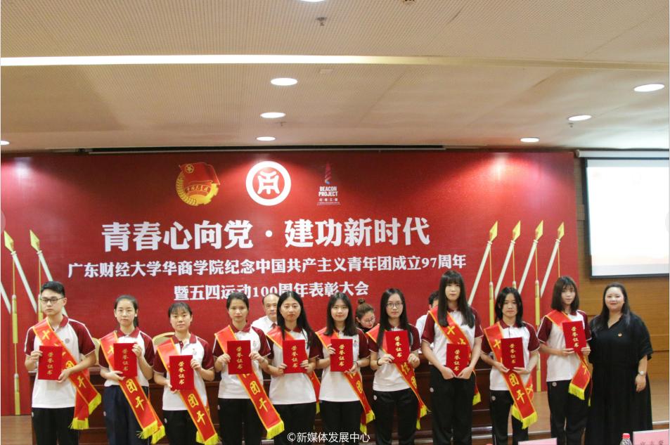 伴随着庄严的团歌,广东财经大学华商学院纪念中国共产主义青年团成立97周年暨“五四”运动100周年表彰大会圆满结束。