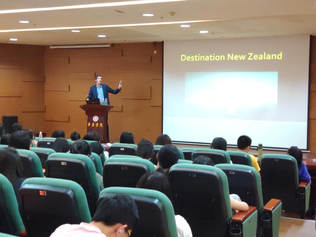 下午,Dr. Filep在我们图书馆报告厅作了主题为“DestinationNew Zealand”(下一站,新西兰)讲座。他介绍了新西兰的旅游优势及新西兰旅游业的现状及未来发展。讲座现场气氛活跃,学生积极与教授提问和互动。