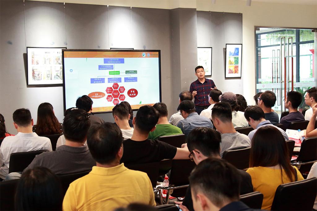 (梦想空间讲座现场:华商学院创新创业学院副院长余家军博士介绍基地项目情况)