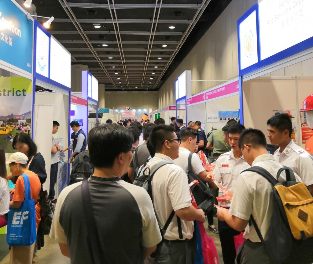 7月6-7日,由香港中华厂商联合会承办的“第26届香港国际教育及就业展”在香港会议展览中心开幕。大会邀请香港政商界及教育界的嘉宾主持启动开幕典礼,劳工及福利局局长罗致光博士、入境事务处处长曾国卫、海关关长邓以海、惩教署署长胡英明、香港考试及评核局秘书长苏国生博士、香港中华厂商会会长吴宏斌博士和厂商会领导,以及700家来自18个国家及地区的海内外著名高等院校及教育机构,香港政府部门、纪律部队及公私营利机构代表出席开幕式。