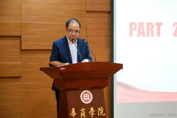 支副校长向我们阐述了建校十四年来的四个发展历程,总结了华商建校办学以来各个时期取得的巨大进步和突出成就。并对学校现今的管理体制、师资队伍发展、学科建设发展、教学平台发展、国际化教育发展、党团建设发展以及办学成果等方面进行了详细介绍。