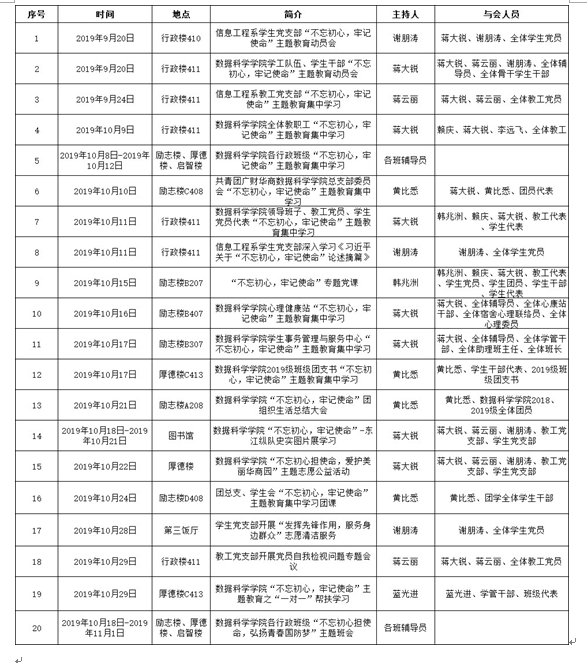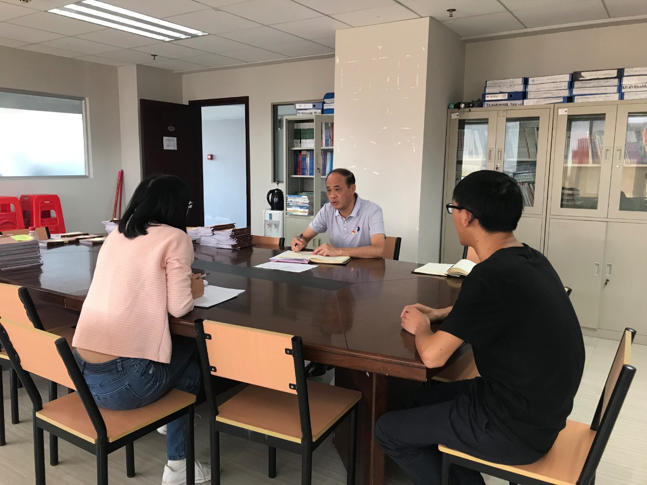数据科学学院教工党支部蒋云丽书记、数据科学学院学生党支部谢朋涛书记主要围绕9月、10月开展“不忘初心,牢记使命”主题教育情况以及针对五个一的工作落实情况分别向苏书记做了工作汇报,并且对下一阶段的工作做了简单的规划。