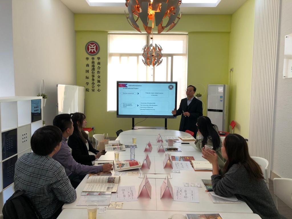 华商教育集团总裁助理熊子珂、国际交流与合作处王文忠处长、国际交流与合作处办公室主任黎柳焕等人热情接待了来访客人。