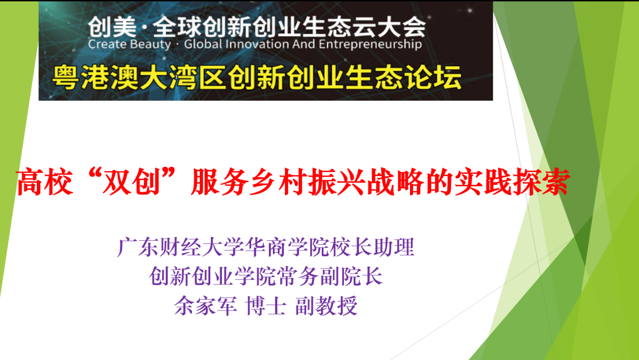 7月4日至5日,首届粤港澳大湾区创新创业生态论坛通过直播形式成功举办。我们创新创业学院联合广东华商众创孵化器有限公司共同举办本届活动,华商学院校长助理、创新创业学院常务副院长余家军博士应邀参加本届论坛。