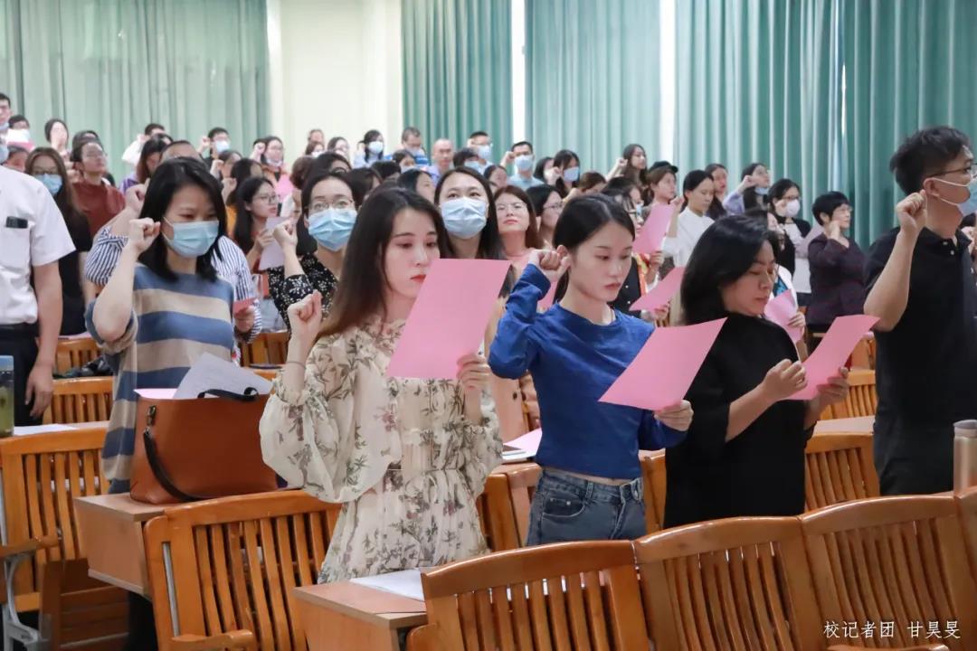 为进一步加强教职工的师德师风建设,强化教师责任与担当,帮助新教职工了解校史校情,提高业务水平,尽快完成角色转换,10月20日下午,我们组织召开2020年新教职工入职培训。此次培训主会场设立在厚德楼B407室,并通过网络直播的形式实时直播到另两个位于励志楼的分会场。执行校长郭银华、党委书记苏宁、副校长支戈壁、各相关职能部门负责人及新教职工近400人出席了本次培训大会。会议由教师发展中心主任吕秉梅主持。