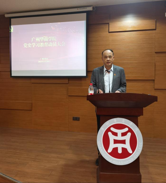 郭银华同志作总结讲话,强调开展党史学习教育,1.增强政治责任感,把党史教育作为我们当前以及今后的重要政治任务;2.坚持不懈用党的创新理论最新成果武装头脑,提高政治判断力,政治领悟力,政治执行力;3.坚决把习近平总书记重要指示批示和党中央决策部署体现到学校发展和党的建设各项工作中;4.凝聚推动华商学院高质量发展的强大动力,做到办实事、解难题,协调解决师生现实问题。