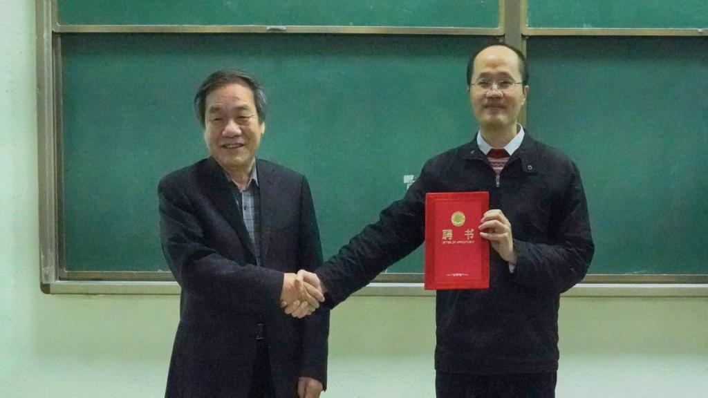 首先,传播与传媒学院院长赵维江教授为林升梁教授颁发聘请文书,敦聘林升梁教授为我们的客座教授。赵院长表示,很荣幸能聘请到林教授,希望林教授可以帮助到传院的发展,给传院的老师和同学们带来更多的学习交流机会,同时也对林教授即将开讲的“人机·交往·重塑:作为‘第六媒介’的智能机器人”讲座表示肯定,认为本次讲座将让我们师生受益匪浅。