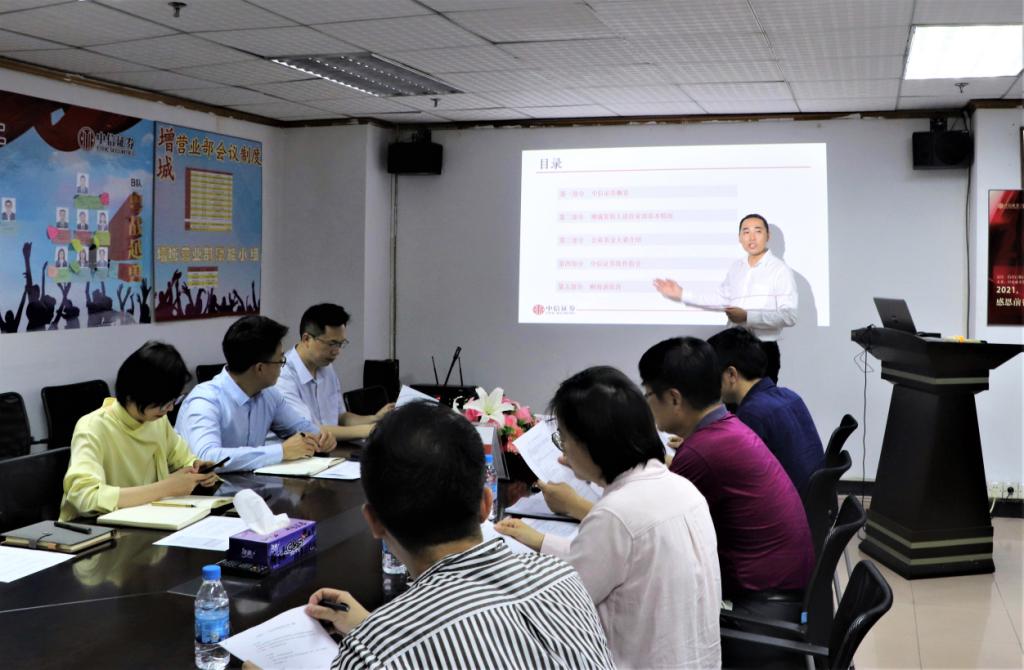 陈子毅先生向老师和同学们介绍了中信证券的发展历程、业务体系、远景、人才需求、用人机制等,他表示中信证券公司是一家从事证券代理买卖、证券的代保管等业务的综合类证券公司,是国内的头部券商,有着完整的工作体系,产品线丰富,一直保持着行业内龙头企业的地位。