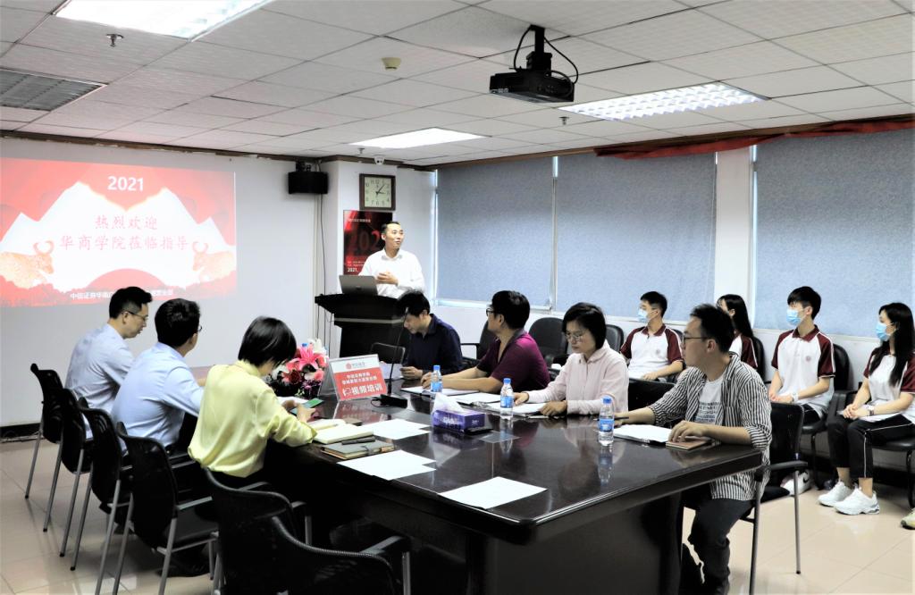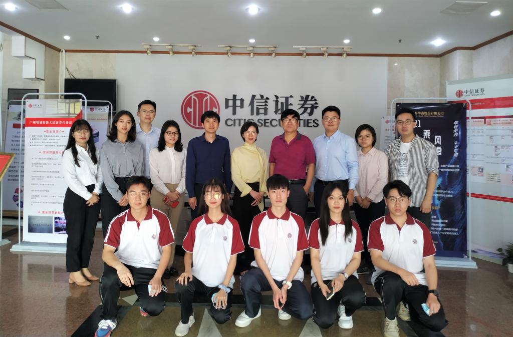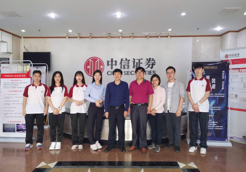 中信证券营业部联席负责人朱晓,团队负责人陈子毅,市场总监曾玉铮,业务总监黄金生对我们一行的到来表示欢迎。双方也就金融专业人才培养、校外实践基地建设、专业活动赛事、学生实习就业等方面进行了深入的交流。
