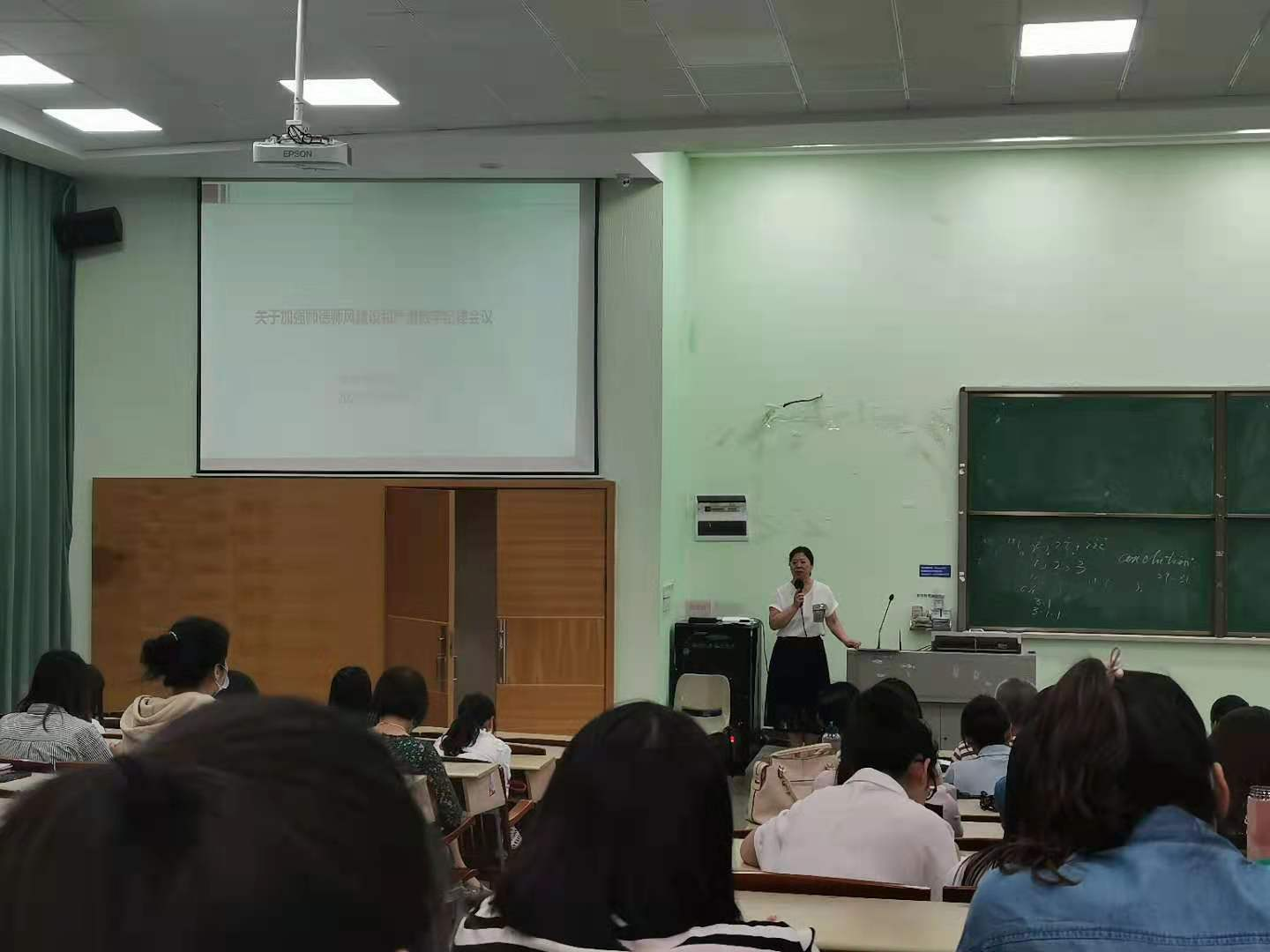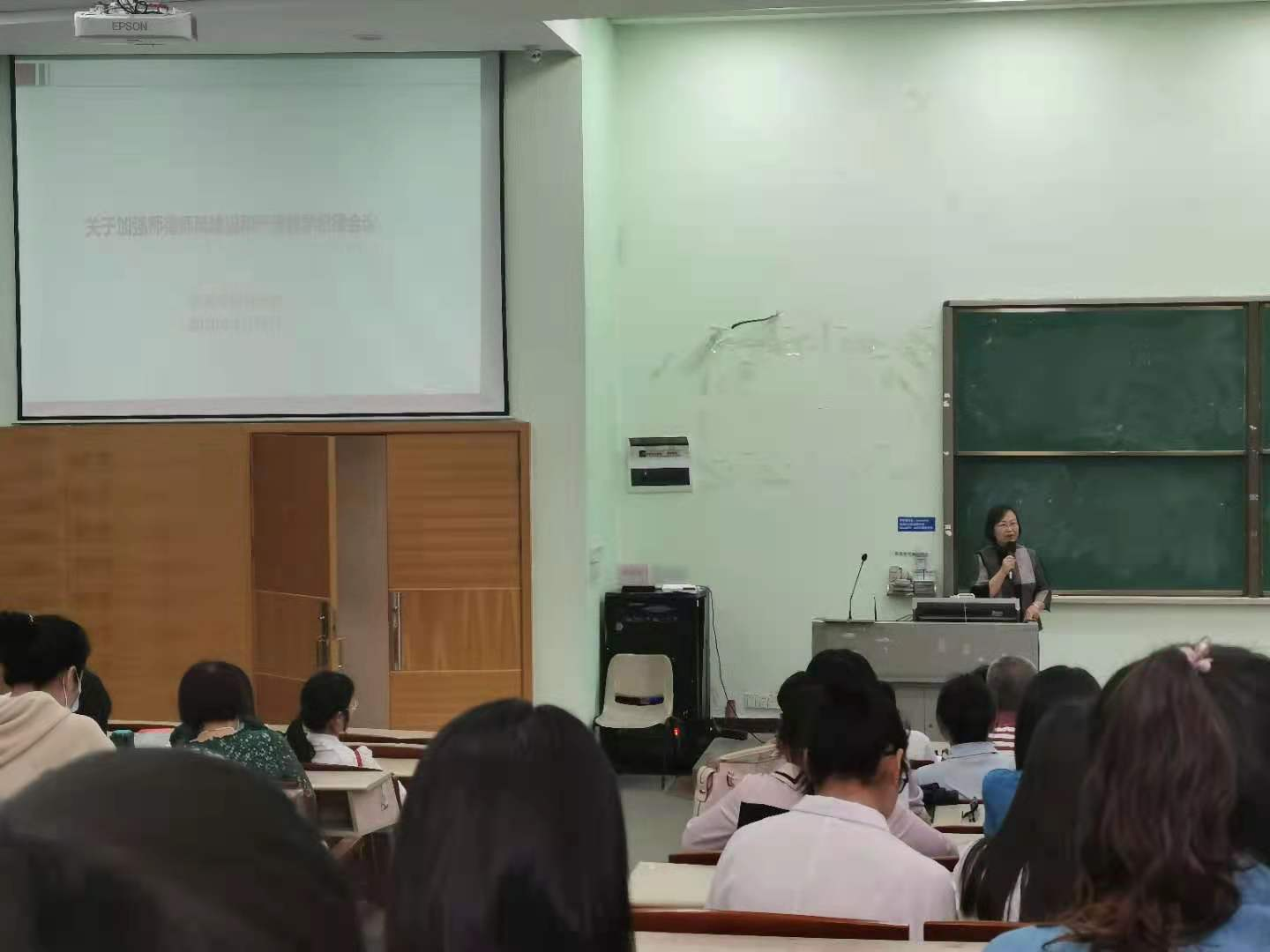 杨润秀副院长通过我们近期发生的教学事故来警示教师们。她认为教师的责任心不仅体现在教书育人上,还体现在日常的生活当中,教师按时上下课,监考不迟到,在生活和课堂中传达正确的价值观也是具有责任心的表现。