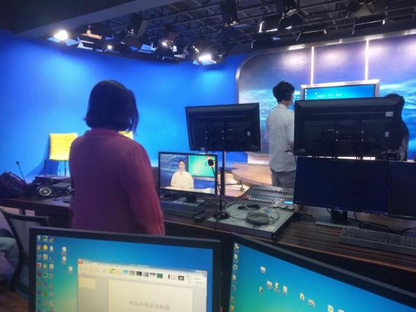(授课教师利用导播台指导学生们现场录制)