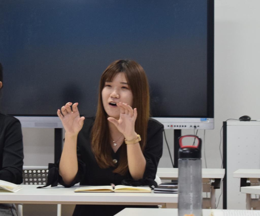 领读人辛学敏老师首先提到了《乡土中国》的一句话——“我并不认为教师的任务是传授已有知识,而是引导学生敢于向未知领域进军。”她从老师的角度,通过实际案例,强调表达与跳出模板的重要性,并鼓励学生要敢于以审视的眼光看待事物。同时也提到了在乡土社会中长老执法的作用与限制,建议道,“可以采用切换角色的方法应对在乡土与城市之间的社会需求。”
