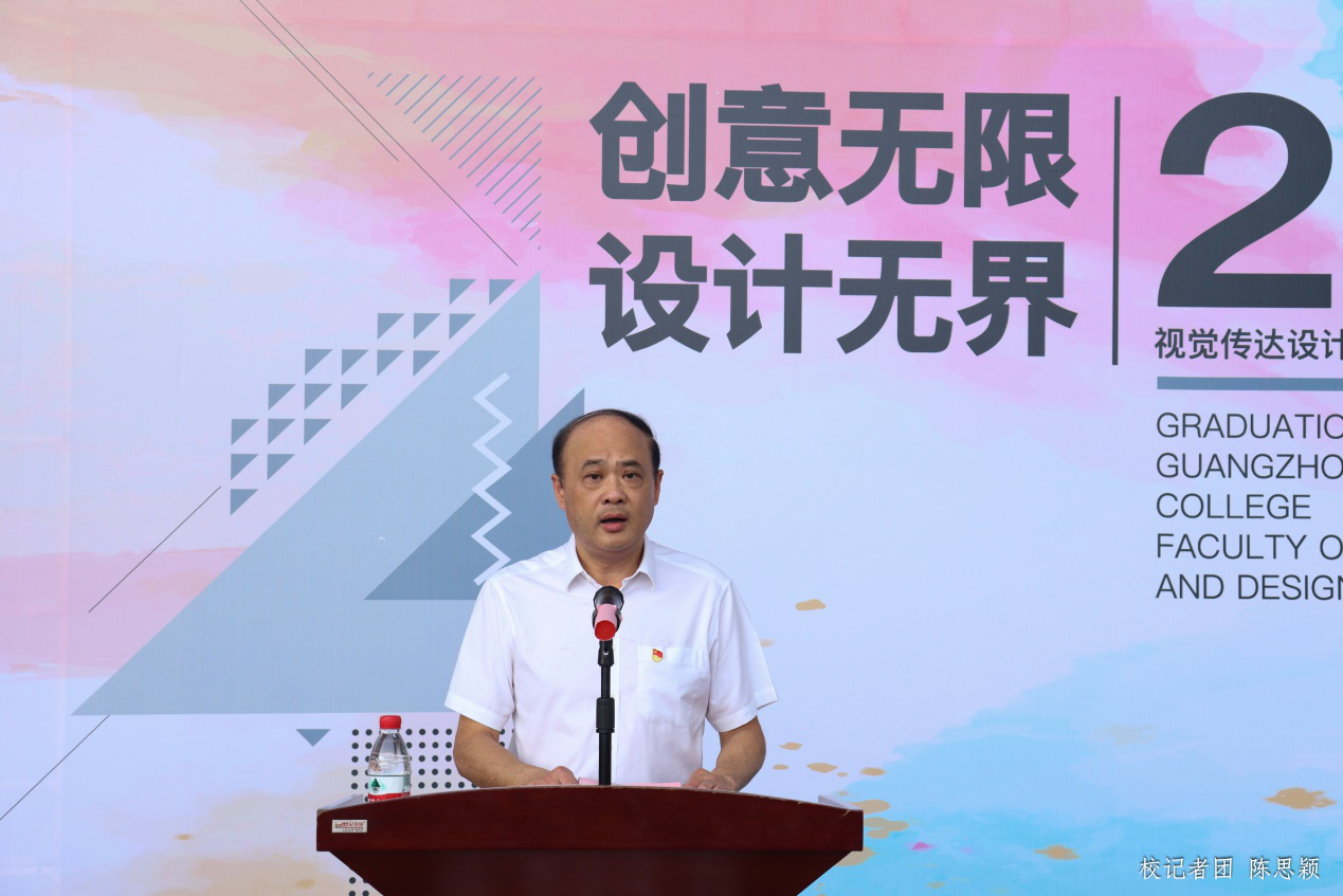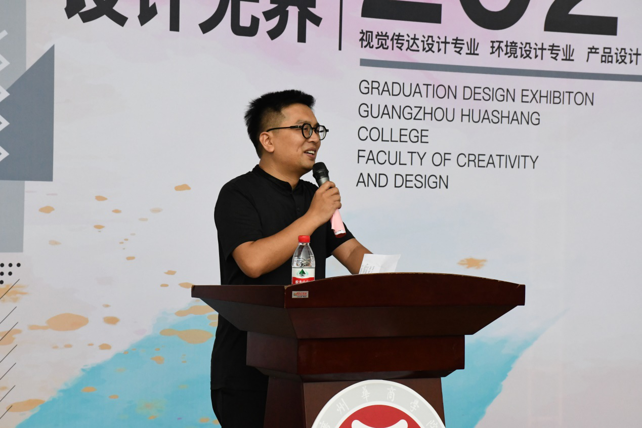 商品设计系副主任张宪法老师作为教师代表发言,他表示创意与设计学院的师生为本次毕业展竭尽心力,学校领导也做了很多支撑性的工作,各方共同的努力才让本次的毕业设计展得以精彩呈现。设计作品展现出学生对艺术新形式的尝试、对设计理念的理解,同时勉励同学们毕业后发挥才能设计出更多的优秀作品。