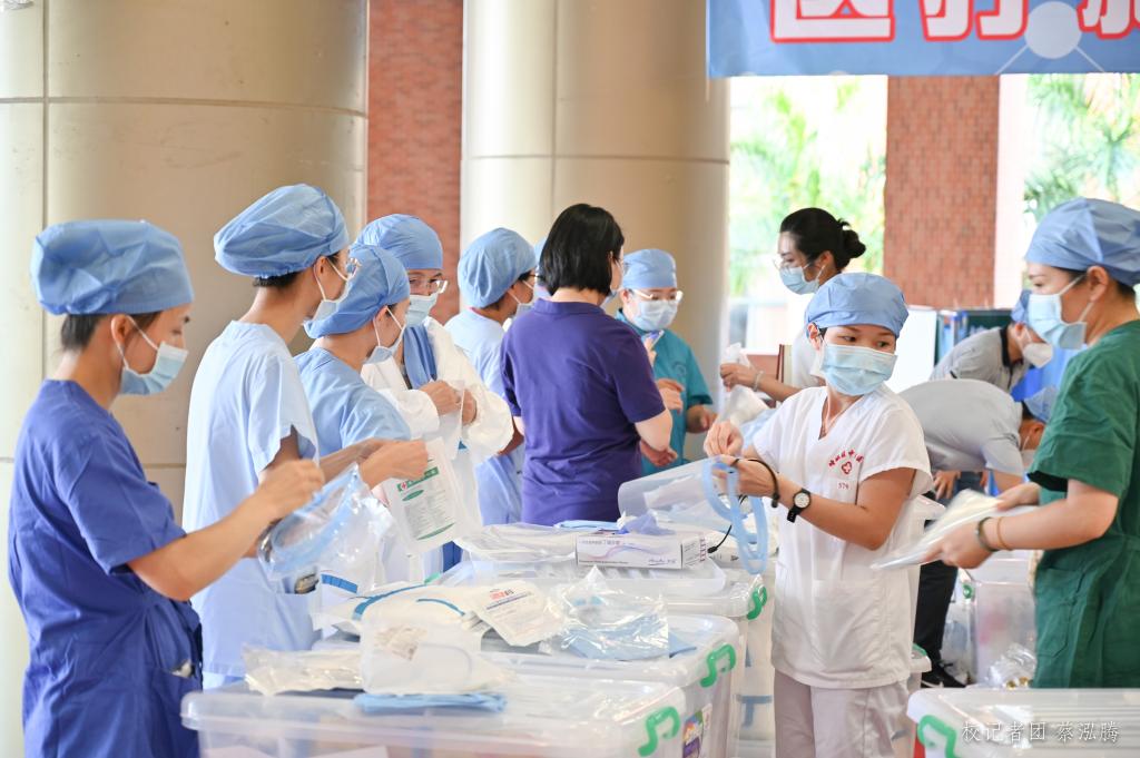 此次核酸检测工作时间紧、任务重。在接收到上级相关防疫工作通知的第一时间,我们快速组织相关部门进行采样点的场地布置、人员安排、物资搬运等工作,为核酸检测工作的开展做好全面准备。准备工作完毕,全体医护人员、学生志愿者以及后勤安保人员迅速就位,各司其职,推动现场工作高效有序进行。