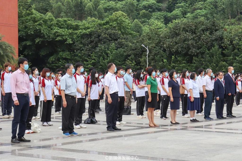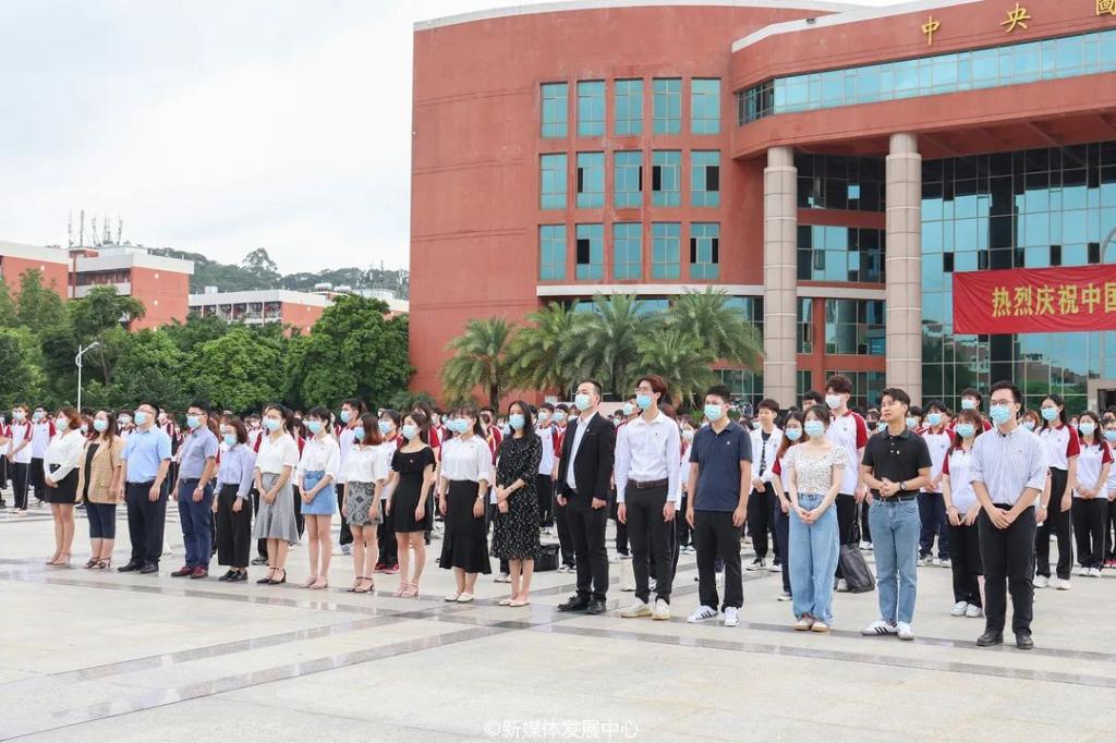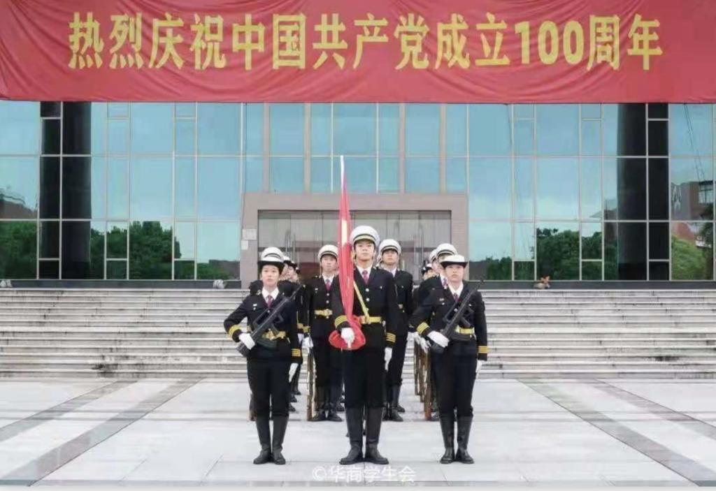 百年征程波澜壮阔,百年初心历久弥坚。2021年7月1日上午7时,为热烈庆祝中国共产党成立100周年,将党史学习教育推向新高潮,培育华商人不忘初心、牢记使命的信念,我们隆重举行升旗仪式。郭银华执行校长、校党委苏宁书记、支戈壁副校长、校党委副书记王锦秀副校长、张捷副校长、陈美华副校长、程辛荣副校长、韩兆洲副校长、王力东副校长、学工部许娜部长、校团委刘苗书记、校团委陈刚副书记、校团委老师、各院系团总支书记、以及校级学生组织代表、各二级院系学生代表近700人统一身着正装和校服,党员同志佩戴党员徽章、共青团员佩戴团徽,精神饱满,情绪高昂,参与此次升旗仪式,庄严献礼党的百年华诞。