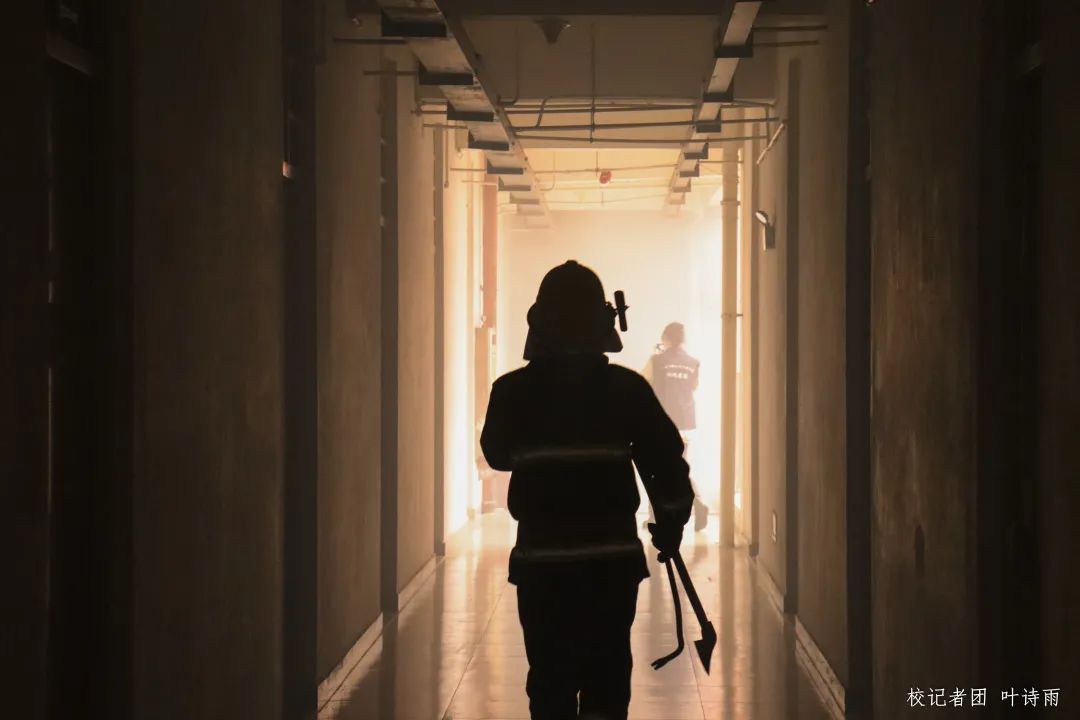 下午三点,王力东副校长亲临现场指导演练。随着报警器响起,西15学生宿舍消防疏散演练正式开始。
