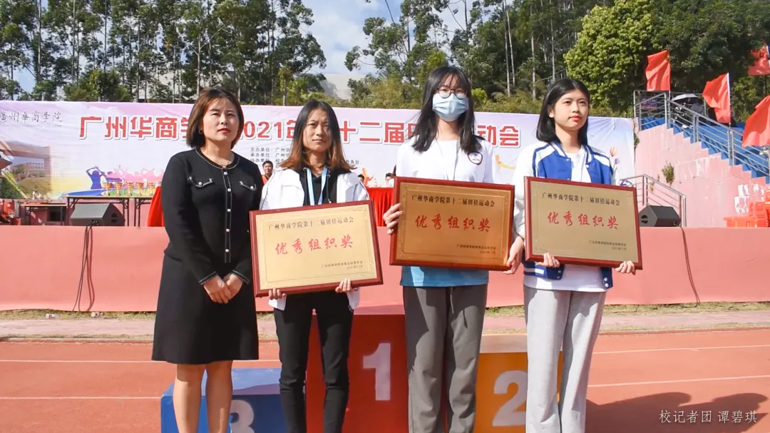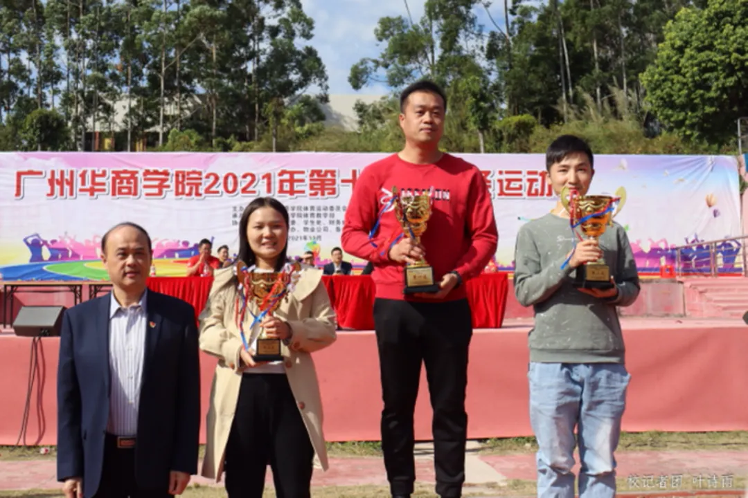 由裁判长顾伟农宣读第十二届田径运动会成绩,排名前三的分别是:第一名四会校区代表队,247.5分;第二名会计学院代表队,155分;第三名数据科学学院代表队,102.5分。第四名至第第八名则分别是管理学院代表队、继续教育学院代表队、伟的国际1946bv官网代表队、 健康医学院代表队、传播与传媒学院代表队。