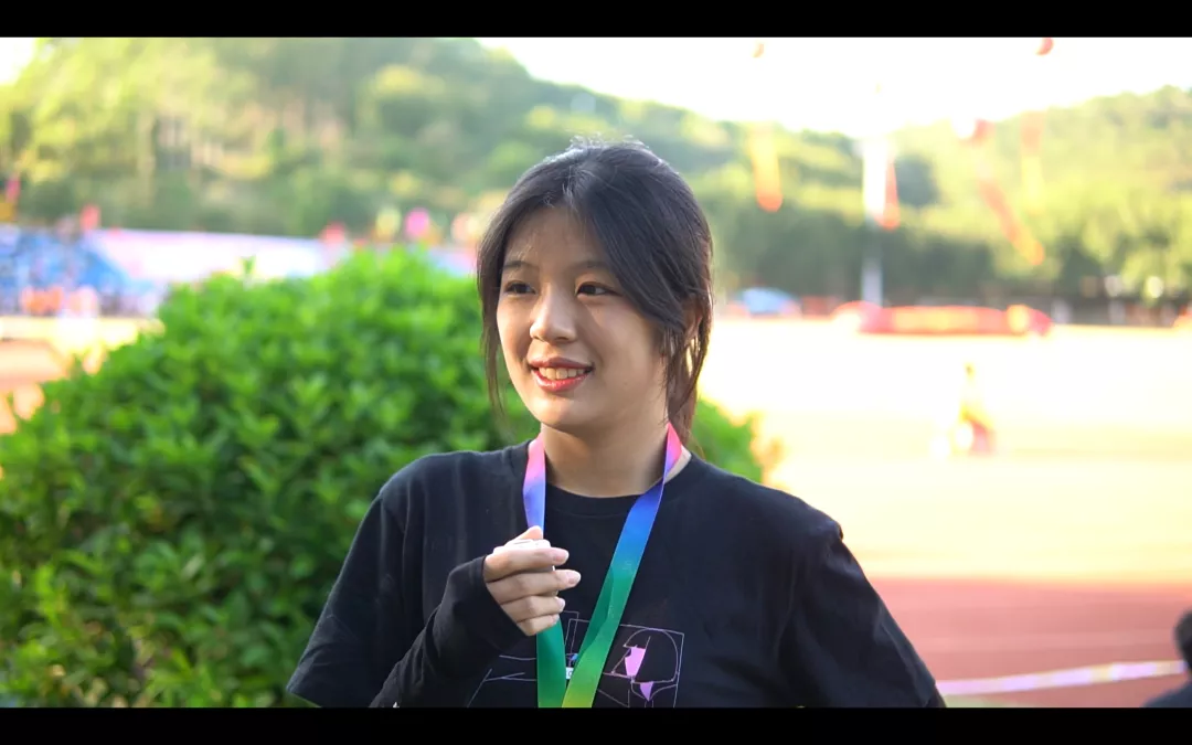 “我参加了这次的女子跳高项目并取得了前三的优异成绩。十分荣幸能在本届田径会中认识许多志同道合的朋友,能够进一步地切磋交流。我也一直很喜欢跳高,希望能一直怀着满腔热情投入其中,体验到跳高真正的乐趣。面对运动会,用心感受赛场的热烈氛围,不要胆怯,不要为自己增加心理负担,用实力赛出自己的水平就是最棒的。”