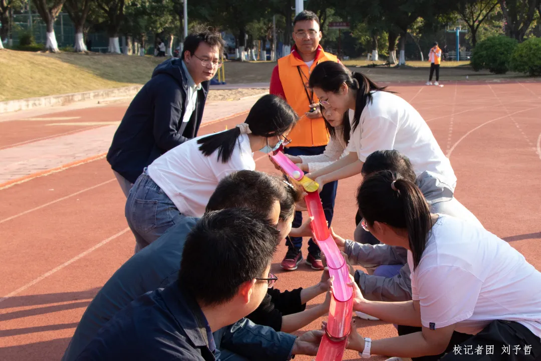 本次趣味运动会由学校工会委员会主办,体育教学部承办,共设置了足球集体点球、旋风跑、同心鼓、集体投篮、珠行万里等项目。趣味运动会以其趣味性、娱乐性及广泛参与性得到了广大教职工的一致好评,这是丰富教职工课余生活,增强团体凝聚力,发扬健康向上的运动精神,构建和谐校园的又一举措。各院系、部教职工们积极参与、团结协作,充分发扬了“友谊第一,比赛第二”的体育精神。