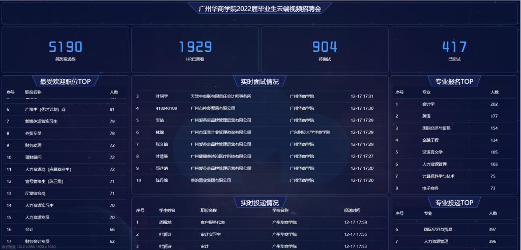 12月17日,新伟德国际1946在云就业平台圆满成功举办2022届毕业生“华商+云端”招聘会。此次招聘会由新伟德国际1946主办、毕业生就业指导中心承办、大学生职业发展协会协办,支持单位为广东省人力资源研究会、云就业平台。