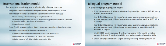 Rhys Williams先生在讲座上提出为培养国际化人才,在中国大学部分学生中开展全英、双语教学的必要性和必要条件,并以中外合作项目模式与国际化模式作对比阐述两者之间的异同。Rhys Williams先生认为双语教学的主要目的是提升学生综合实力,使学生在英语环境中获得不一样的经历;而教师们除了讲解知识外,应鼓励学生用英语进行交流,给予学生开口说英语的自信。
