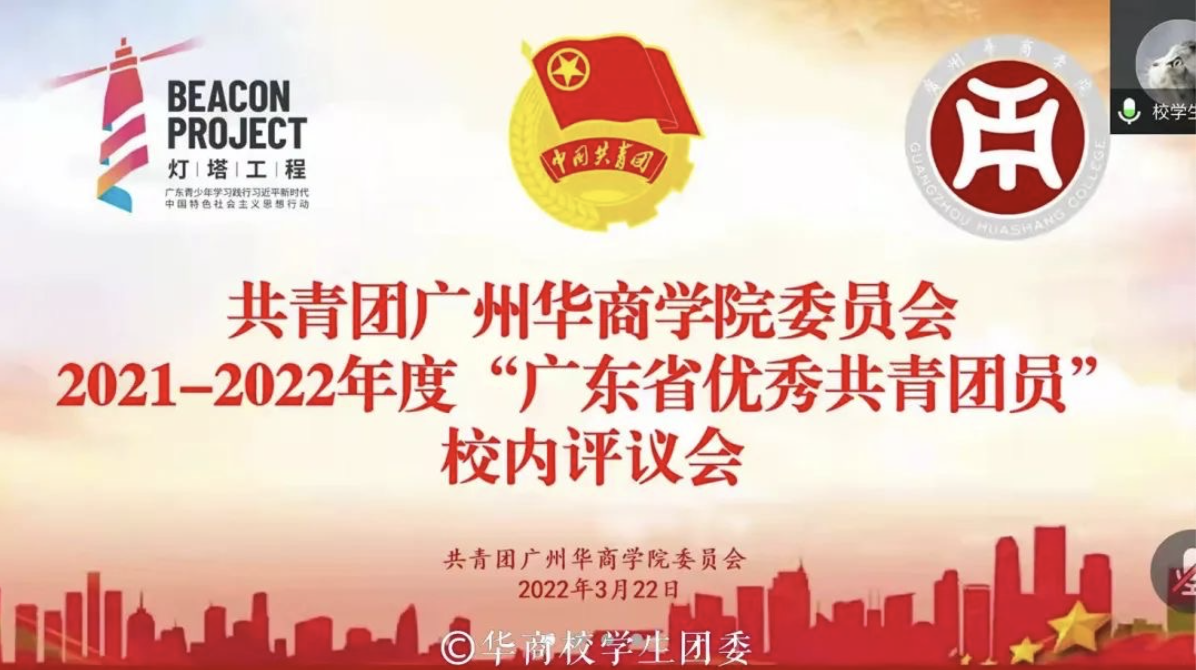 为深入学习贯彻习近平总书记关于青年工作的重要思想、持续深化落实学联学生会组织改革要求,建设富有理想、关心同学、清新阳光的团学组织形象,新伟德国际19462021-2022年度“广东省优秀学生骨干”校内评议会于2022年3月22日15:30在腾讯会议顺利举行。树立先进榜样,以此团结引导全校各级学生组织和青年学子,努力为华商学子实现习近平总书记赋予的使命任务奉献青春力量,以优异成绩迎接党的二十大胜利召开。