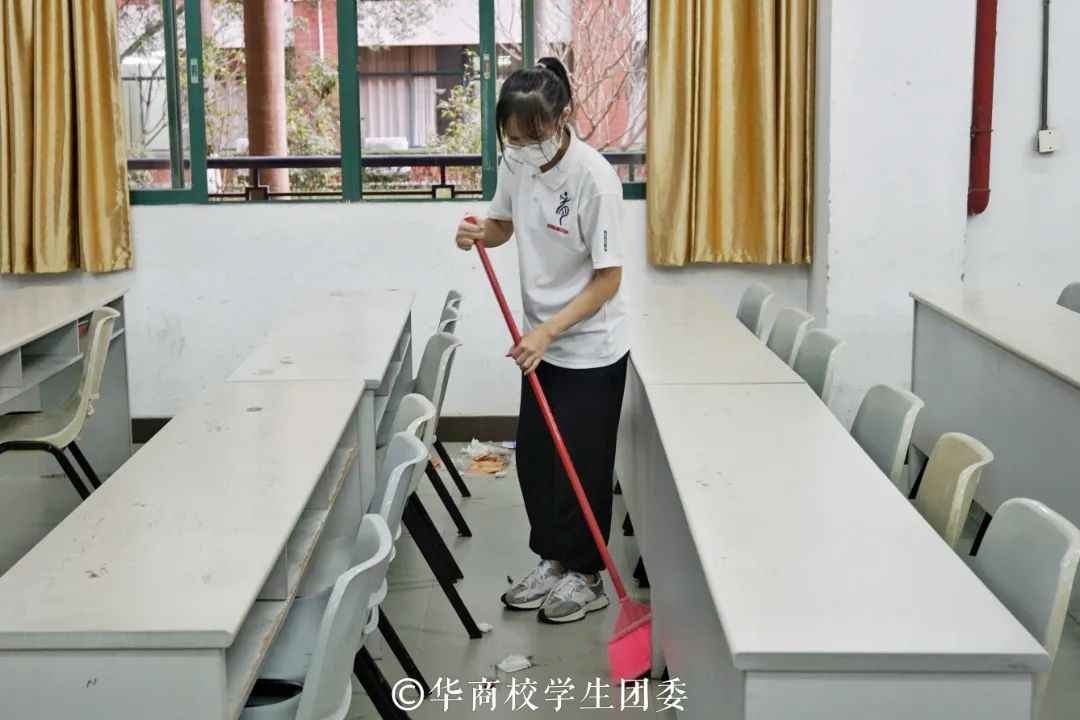 在校学生团委工作人员的带领下,学员们准时有序到达华商学院教资考场。大家分工明确,团结合作。在指定的志愿活动区域,他们热情洋溢地开始了清洁活动,打扫每一个角落,清洁教室里的垃圾,仔细擦拭每间教室桌子上的污渍灰尘,并将垃圾用袋子装好扔到垃圾桶里。此次雷锋月活动让华商学子树立起自觉维护校园公共环境卫生的意识和“保护环境,爱护校园,从我做起”的理念,提升团结合作能力,增进彼此的友谊,更用自己的实际行动展现华商学子的精神面貌。