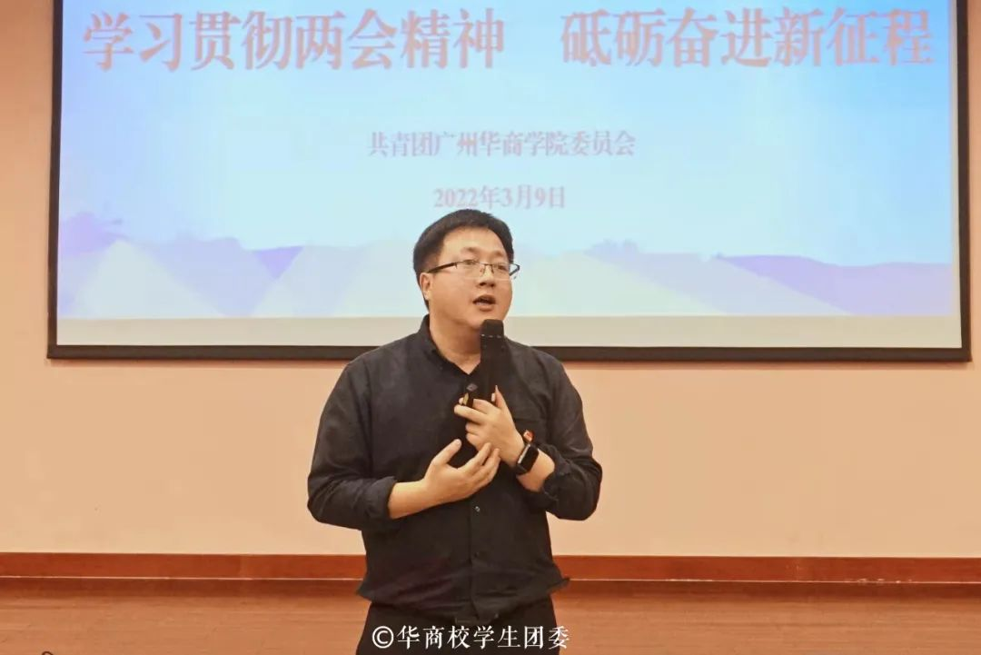 青马班班主任陈刚副书记,向学员们介绍了近日召开的“两会”内容,以今年“两会十大关键词”切入主题,多方位解读“两会”工作报告以及“两会”精神。陈刚老师表示,对于新时代华商青年来说,“两会”精神应该是一种勇于担当、勇于创新的精神。首先,学习和贯彻“两会”精神,我们要提高自身的思想政治站位,以“两会”精神做指引,用青春之声传递“两会”精神,主动宣讲“两会”和中国故事、中国精神,展现出当代青年大学生的责任与担当。其次,我们要敢于挑大梁,当主角,要抓住机会,要勇于创新,敢于挑战。创新是引领发展的第一动力。总书记两会上与代表委员强调创新发展、高质量发展。我们是青年大学生,青年是实现中华民族伟大复兴的先锋力量。青春是用来奋斗的,人生因为奋斗而变得更加美好。我们要加强学习,要脚踏实地,勇于在学习和实践中提高和总结自己,不讲空话,干实事,相信我们都能够敢于创造创新不会辜负我们的青春年华。用知识武装头脑,坚定践行新发展理念,当好创新发展的先行者。