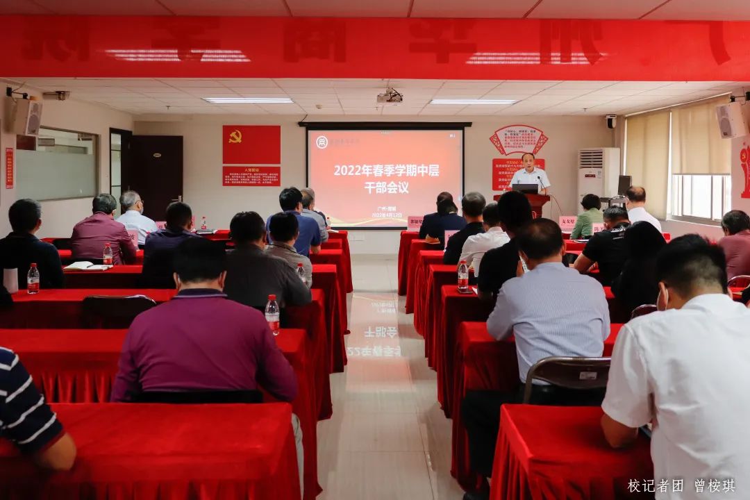 4月12日下午,我们召开2022年春季学期全校中层干部会议。会议在行政楼502设主会场,同时采取网络视频直播的形式设分会场。全体校领导以及各单位第一负责人主会场参会,全体中层干部参加线上视频会议。会议由支戈壁副校长主持。