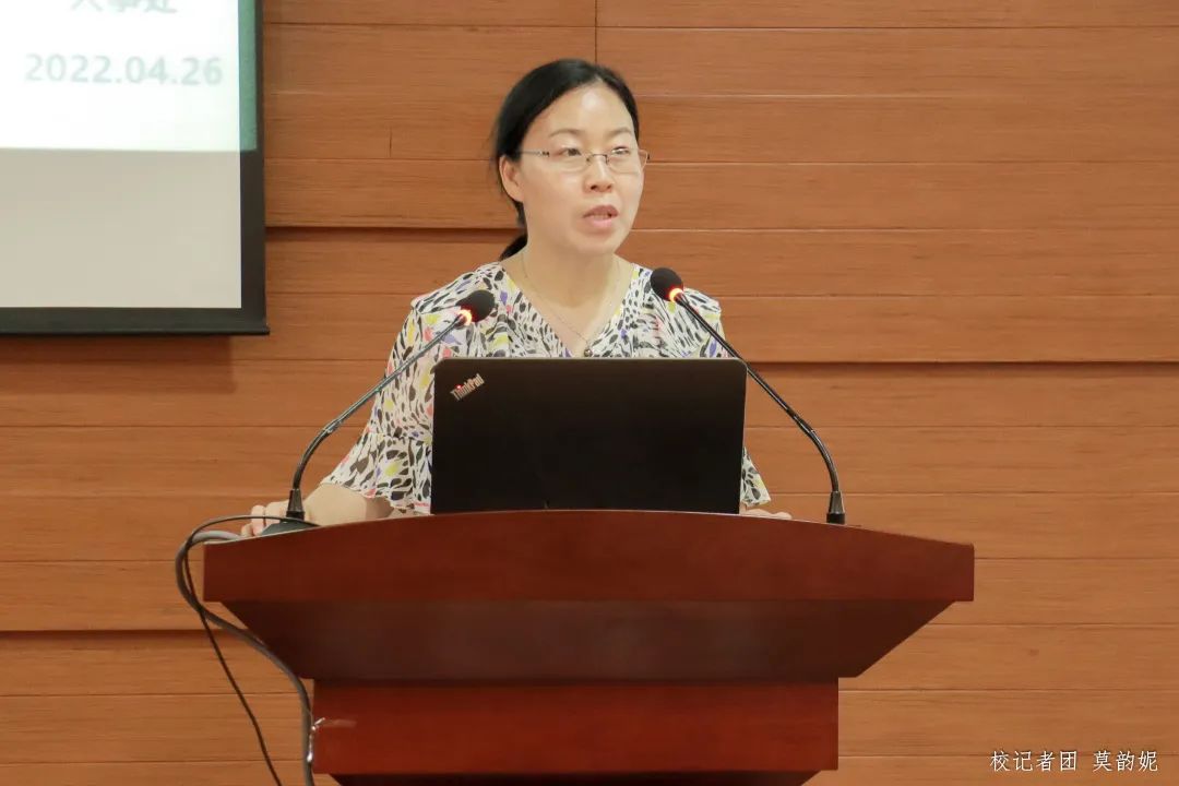 在大会发言环节,来自我们职称审核工作小组的旷美容、黄静萍、孔海兰三位代表详细讲解了2021年职称申报材料的填写要求及注意事项,包括申报表推荐表的填写、如何界定科研教研情况及指导学生参加社会实践等内容,帮助职称申报的教师进一步明晰申报要求,规范申报材料的填写,凝心聚力为顺利完成职称评审工作做充足的准备。