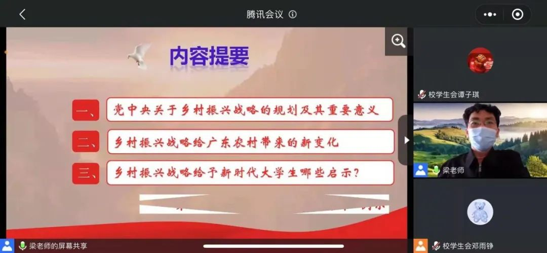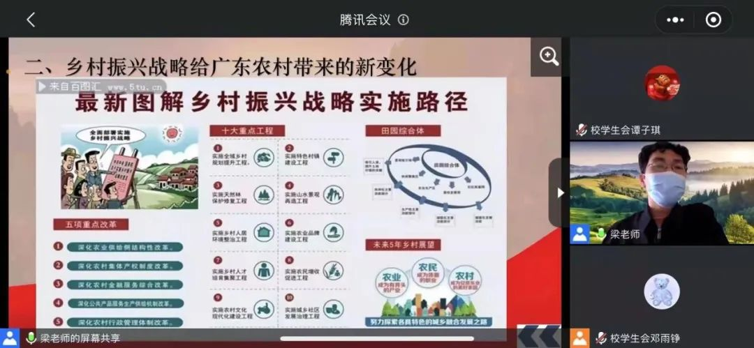 “农为邦本,本固邦宁。”十九大报告强调,农业农村农民问题,是关系国计民生的根本性问题,必须始终把解决好“三农问题”作为全党工作重中之重。为穿越广东的乡间地头,感受广东新农村新变化,探求万千黎庶如何在机遇中寻发展,描绘属于中国的乡间画卷,3月30日,华商青年大讲堂在腾讯会议顺利举办。本次大讲堂的主讲嘉宾是马克思主义学院梁茼老师。
