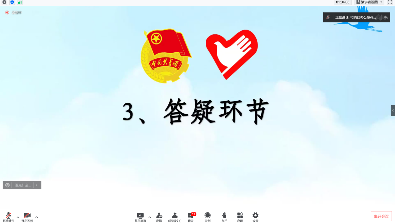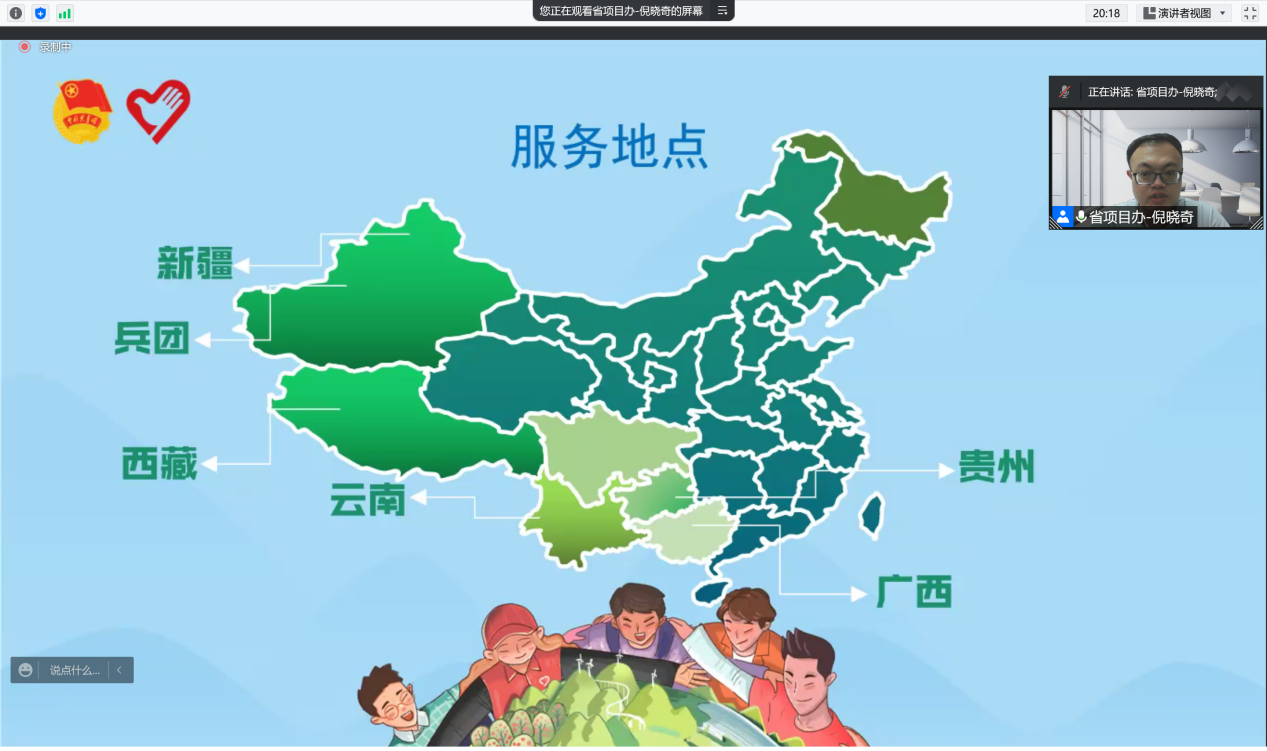 习近平总书记曾在全国高校思想政治工作会议上指出:“要鼓励高校学生把视线投向国家发展的航程,把汗水洒在艰苦创业的舞台,到基层去、到西部去、到祖国最需要的地方去,做成一番事业、做好一番事业”。为响应党和国家的号召,广泛动员我们2022届毕业生积极到祖国的西部、山区贡献青春力量。5月16日晚,我们团委在腾讯会议举办“2022年度‘振兴乡村,不负青春’西部(山区)计划”宣讲会。党委宣传部部长、校团委刘苗书记,团省委—志愿者行动指导中心倪晓奇老师,校团委陈巧巧老师,校团委杨图珍老师以及各学院学生代表近两百人收看了此次宣讲会。