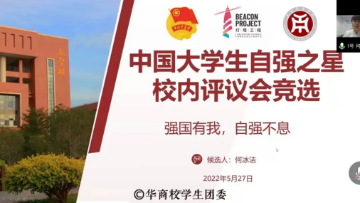 为深入学习宣传贯彻习近平总书记在庆祝中国共产主义青年团成立100周年大会上的重要讲话精神及习近平总书记关于青年和教育工作的重要论述,激励华商青年自立、自信、自强,担起党和人民赋予的历史重任,进一步用身边的榜样力量引领广大同学不断坚定理想、传承红色基因,践行“请党放心,强国有我”的青春誓言,以实际行动迎接党的二十大胜利召开。5月27日12:30,新伟德国际19462021年度“中国大学生自强之星”校内评议会在线上腾讯会议顺利召开。