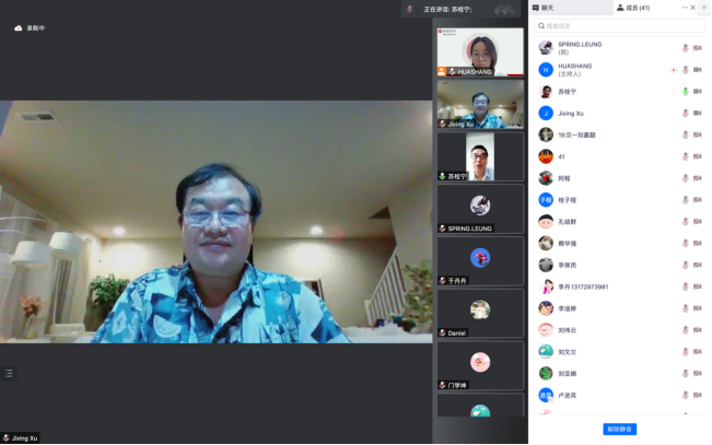 苏桂宁院长做总结发言,他对徐纪兴先生信息详实的讲座及耐心的问题解答表示感谢,他希望各位老师能够把握这次机会,多与海外优秀的汉语教师沟通交流,了解海外汉语教学情况,积极有所为地把我们汉语国际教育专业办好。