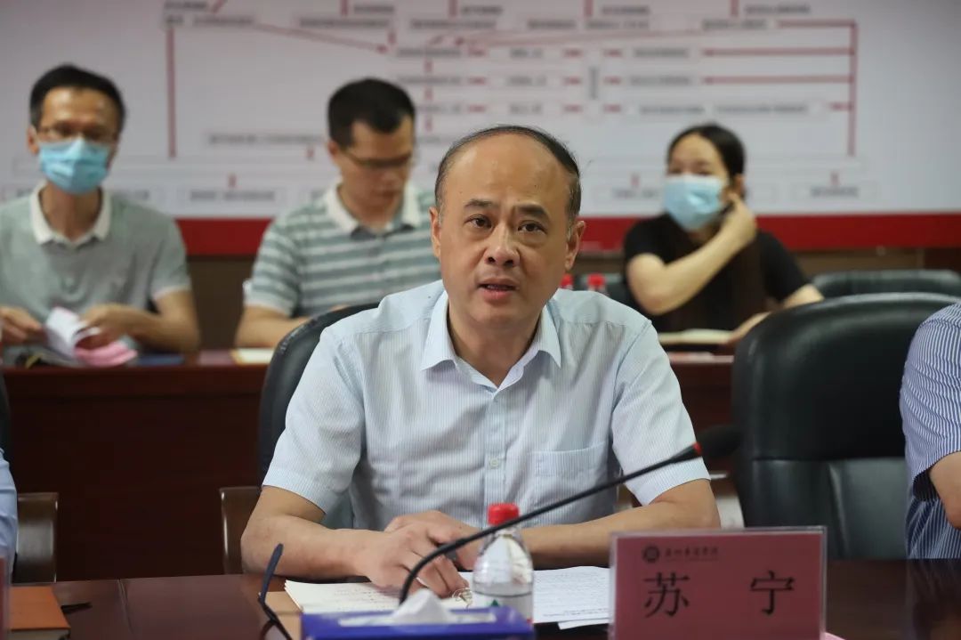 校党委书记苏宁首先代表学校党委对全体招生录取工作人员表示感谢和慰问,他指出普通高校招生录取工作是民生大事,全体工作人员要严格执行招生纪律,进一步统一思想,切实增强责任感和使命感,强化安全部署,营造风清气正的招生环境:同时要优化考生服务水平,畅通信访投诉渠道,增强服务意识,以行动践行“我为群众办实事”,急考生之所需,想考生之所想。