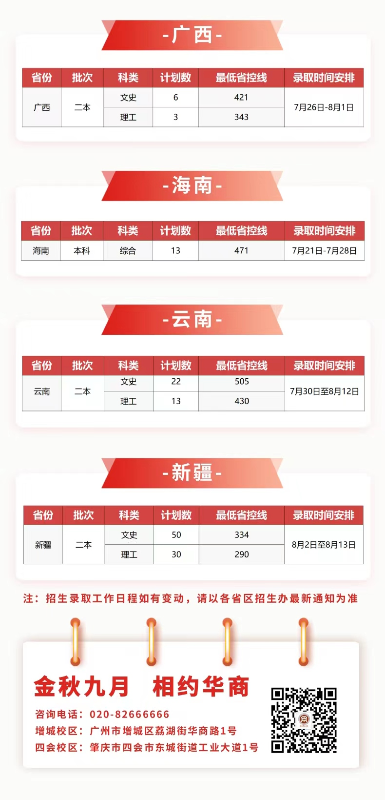 2022年夏季普通高校招生进入录取阶段,新伟德国际1946首场录取将于7月14日开始。我们在各省份招生录取工作日程安排如下: