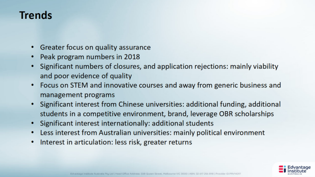 Rhys Williams先生是澳大利亚中汇学院(EIA)国际合作总监,他在澳大利亚的大学及私立机构的跨境教育合作方面拥有丰富的设计和管理经验,曾作为维多利亚大学跨国教育合作(TNE)总监,管理澳大利亚大学领域规模最大、用途最广的TNE系列项目。Rhys先生通过与中国、马来西亚、越南、新加坡、斯里兰卡和印度等国的多个组织机构建立的合作伙伴关系,每年帮助8000多名国际学生获得澳大利亚奖学金和学费优惠。