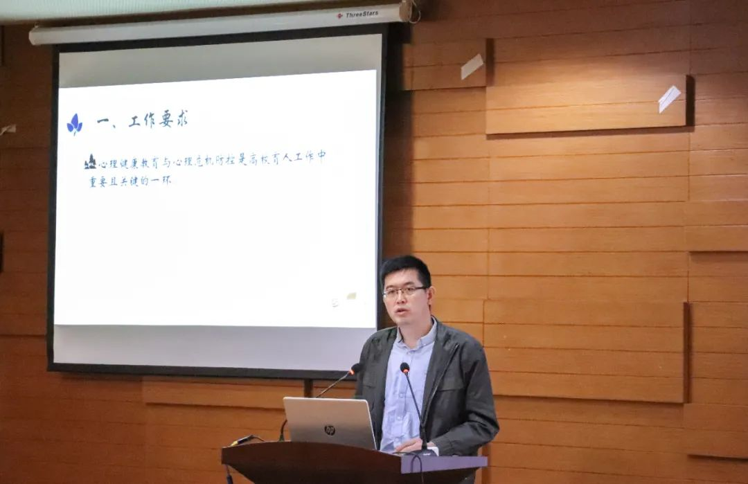 吴连宁老师讲述心理普查回访工作。他主要讲述了四个要点:一是工作要求,他阐述了心理健康教育与心理危机防控是高校育人工作中重要且关键的一环;二是普测筛查的流程和方法;三是访谈的注意事项;四是指导各辅导员如何完成访谈。吴连宁老师希望辅导员能够重视并做好学生心理健康工作,做学生的朋友,保证每一位学生健康快乐地成长。
