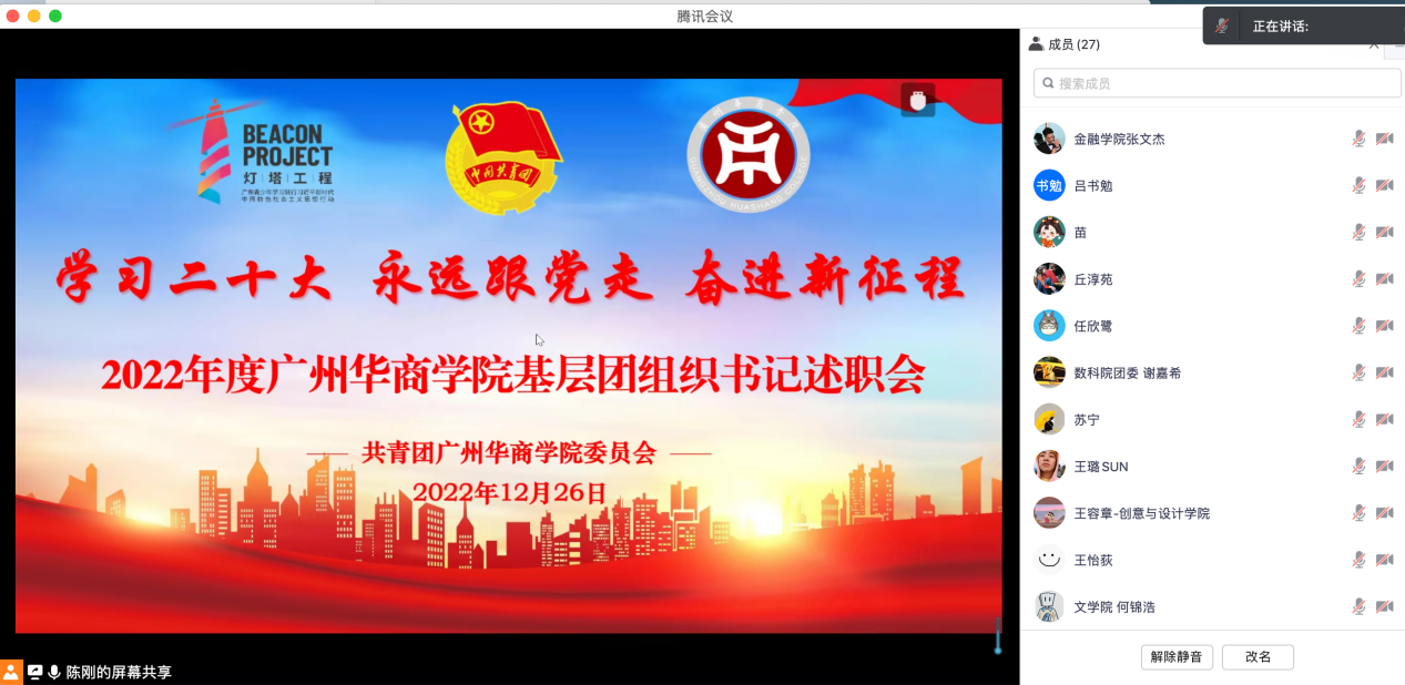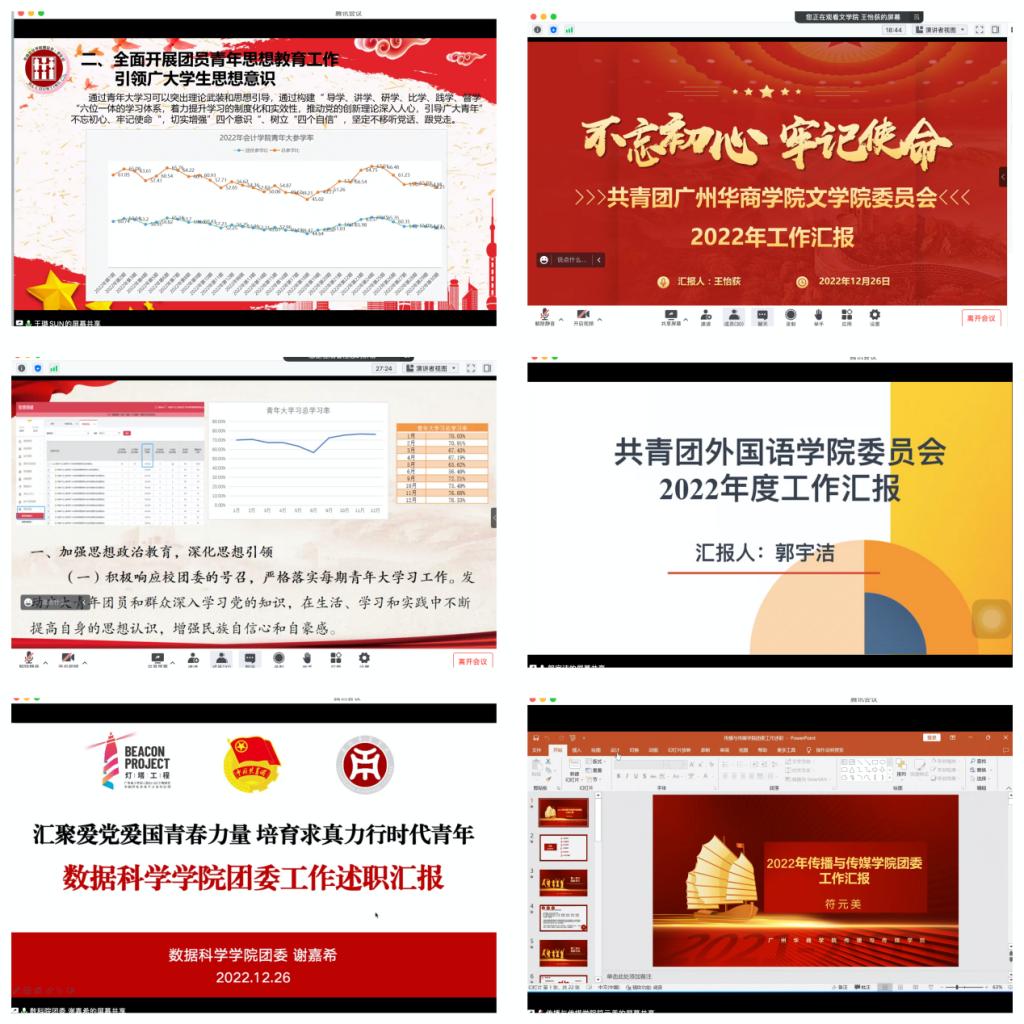 本次会议严格按照团中央、团省委关于基层团组织书记述职评议考核有关工作部署以及学校党委对共青团工作的具体要求。会议对我们2022年共青团工作进行了系统的梳理和总结,为各学院借鉴交流、取长补短、明晰方向、共谋发展搭建了平台,同时也对2023年持续深化共青团改革创新进行部署。在今后的工作中,华商共青团将始终坚守初心使命,牢牢把握“加强思想政治引领”为根本,牢记“服务青年”的工作宗旨,做好学校联系广大青年学生的桥梁和纽带作用,加强共青团的“政治性、先进性、群众性”为工作目标,聚焦主责主业,拓宽工作思路,创新活动载体,全面推动共青团各项工作不断取得新成绩!