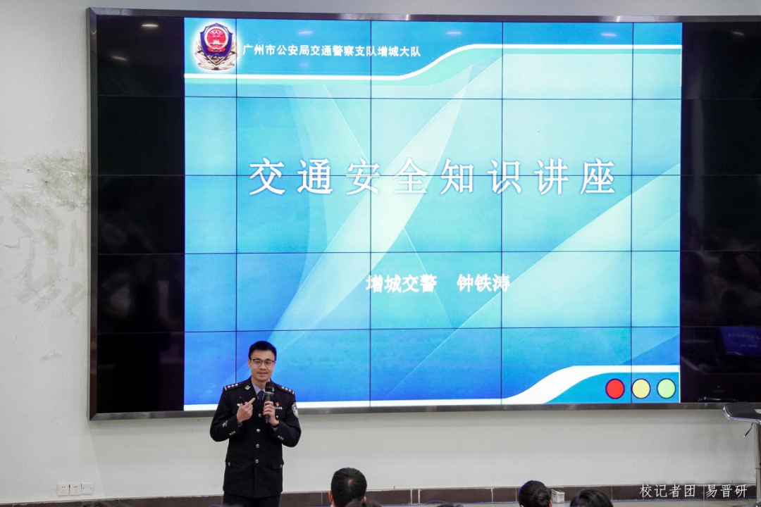 增城区分局交警大队钟铁涛警官通过播放近年来增城区触目惊心的交通事故案例视频,让大家感受到了违反交通规则带来的严重后果。随后钟警官从“拒绝酒后驾驶”“做好‘一盔一带’”这两个方面绘声绘色详细描述了 “酒驾的危害”“不遵守交通规则的危险”“骑行戴头盔的重要性”“远离危险车辆的必要性”,提醒广大同学们提高自我安全保护意识,坚持安全守法出行,拒绝酒后驾驶,做好一盔一带。