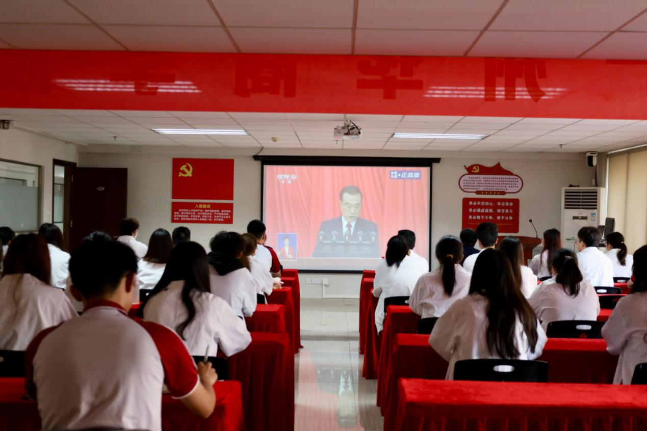 学生代表 何以立:会议上,国务院总理李克强向大会作政府工作报告,报告中对过去一年和五年工作作出了回顾。听完总理的报告,我深深感受到党和国家工作的不易。五年来,全党上下深入贯彻以习近平同志为核心的党中央决策部署,完成了如期打赢脱贫攻坚战、深入实施创新驱动发展战略、切实保障和改善民生等工作。作为一名青年党员,我定听党话,跟党走,提高政治站位,亮身份,做表率,积极发挥党员先锋模范作用!