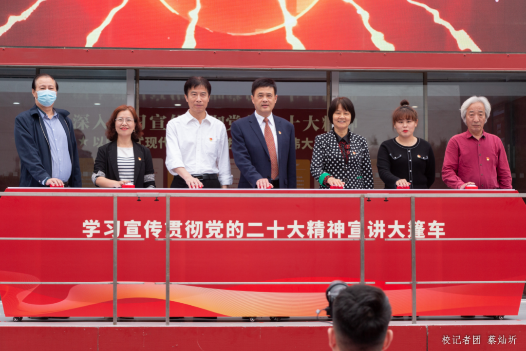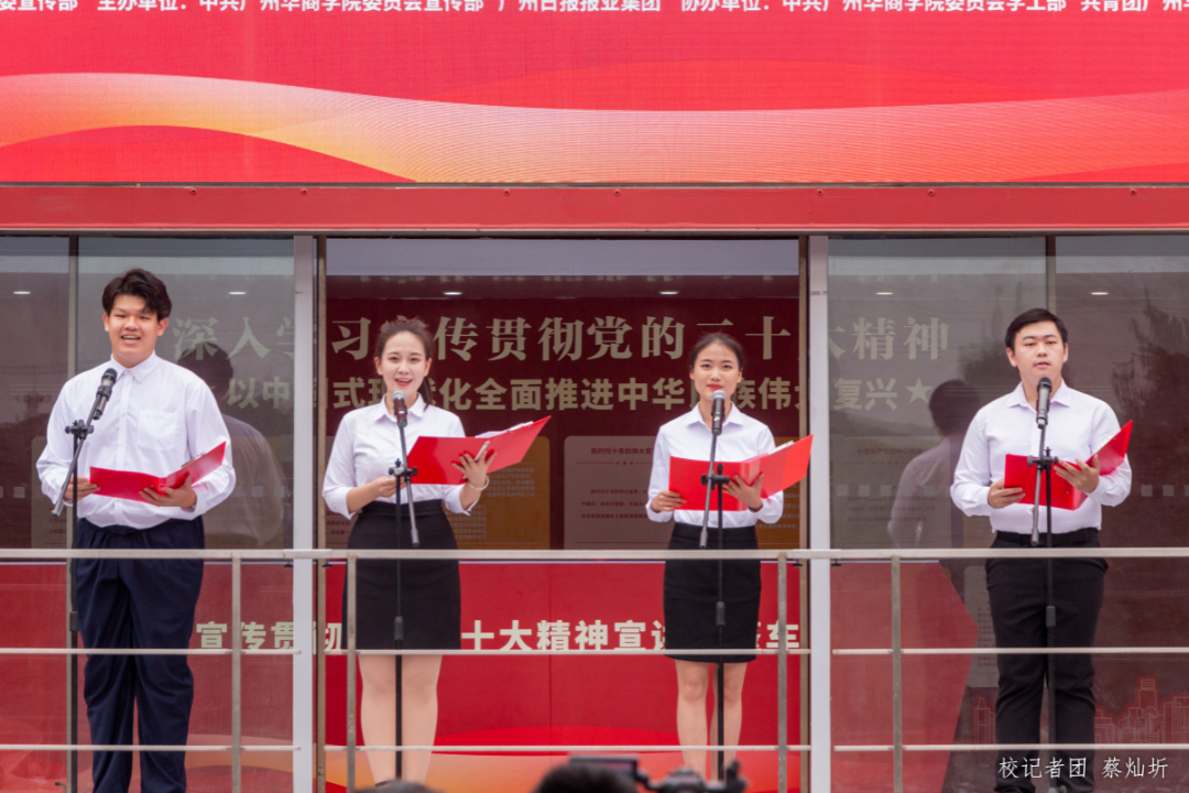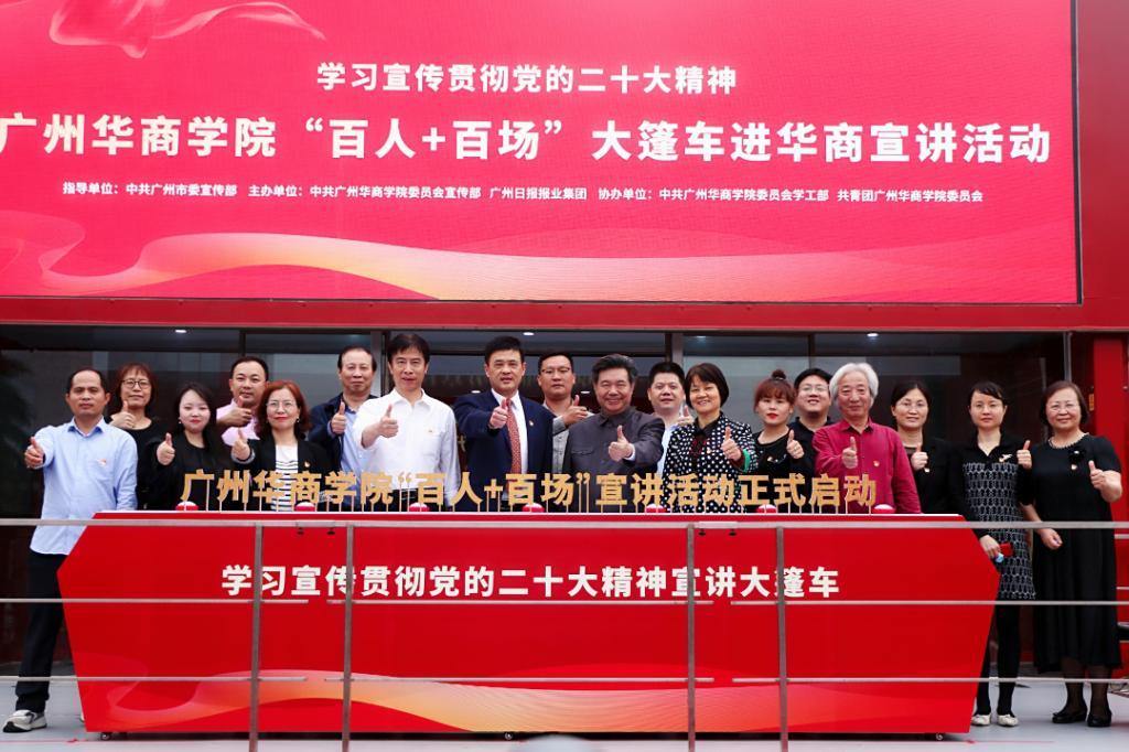为深入学习宣传贯彻党的二十大精神,扎实推动党的二十大精神走深走实,将全体师生的思想和行动统一到党的二十大精神上,3月21日下午,我们在“创百年名校,育华夏英才”广场前举行学习宣传贯彻党的二十大精神——新伟德国际1946“百人+百场”大篷车进华商宣讲活动启动仪式。参加本次启动仪式的有校党委书记苏宁,党委副书记、副校长王锦秀,副校长王力东及各职能部门负责人、二级学院党组织副书记、马克思主义学院教师代表、各学院学生代表、各单位宣传联络员。此次活动还邀请了广东省红色文化研究会、红色宣讲团高级顾问郑宏彪作党的二十大精神微宣讲。